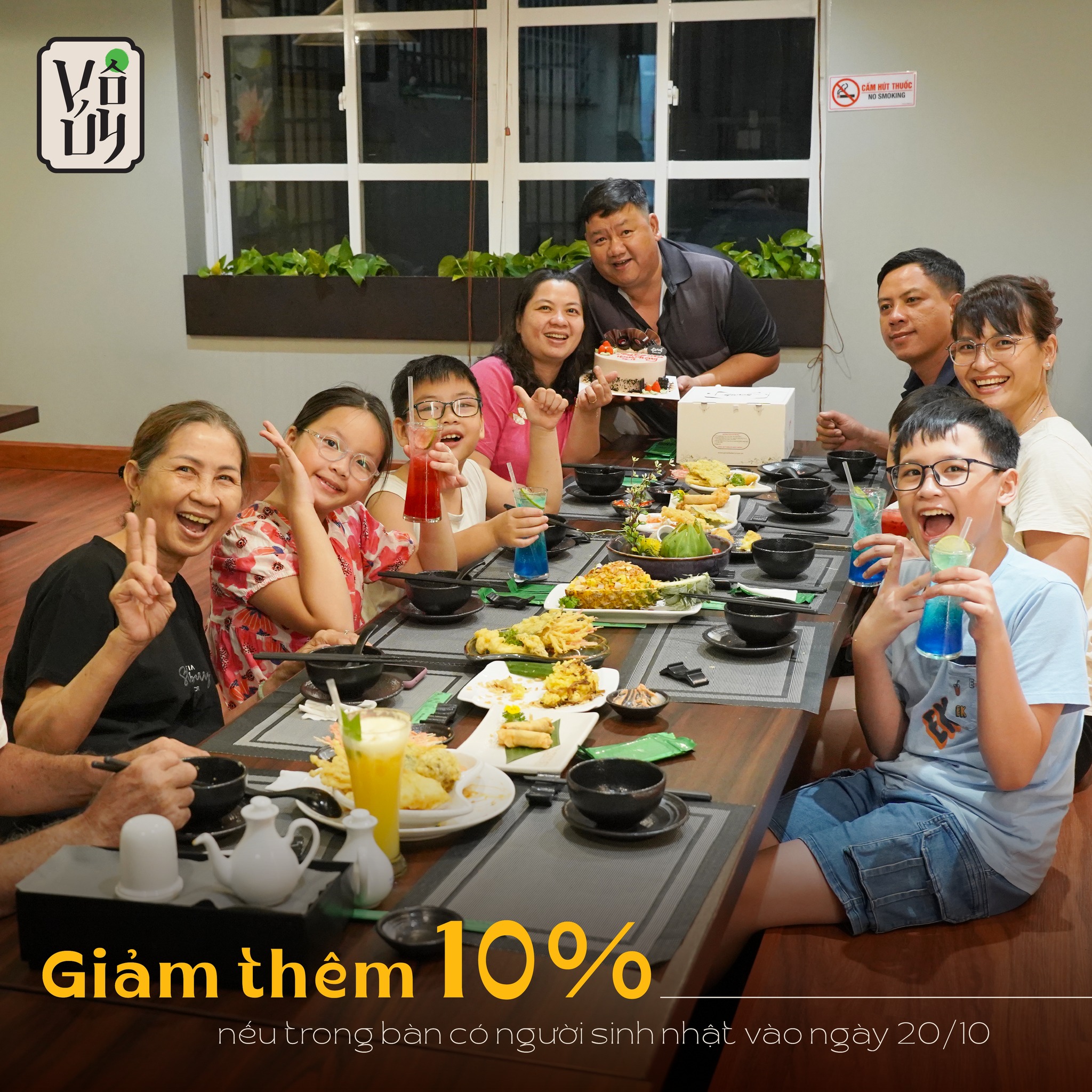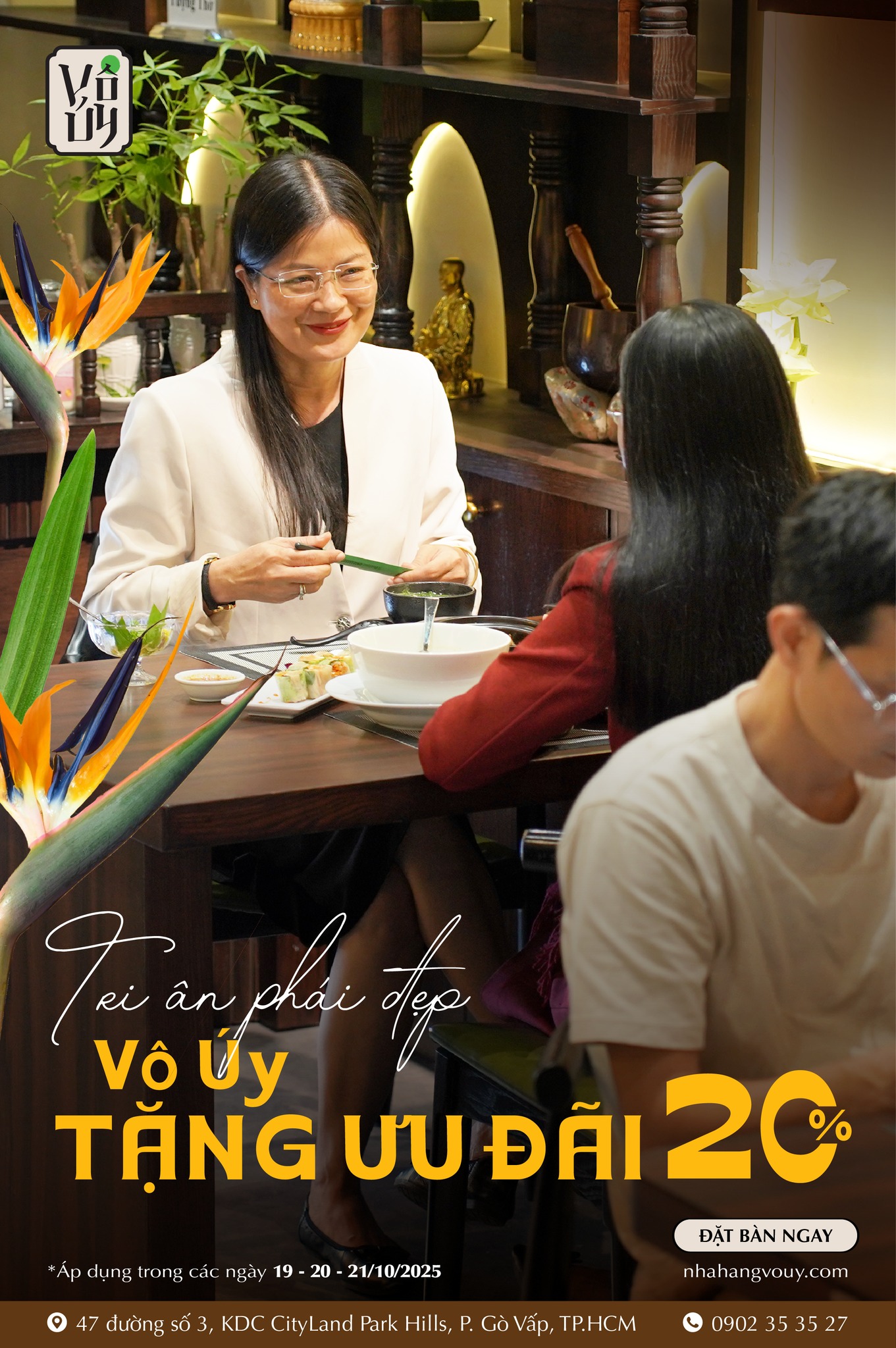 Ngày 20/10 – dịp đặc biệt để tôn vinh vẻ đẹp, sự dịu dàng và những đóng góp thầm lặng của người phụ nữ Việt Nam – cũng là lúc chúng ta gửi gắm yêu thương bằng những hành động nhỏ nhưng ý nghĩa. Năm nay, Nhà hàng chay Vô Úy mang đến chương trình “Tri ân phái đẹp – Ưu đãi liền tay lên tới 20%”, như một lời chúc chân thành đến tất cả những người phụ nữ đáng quý.